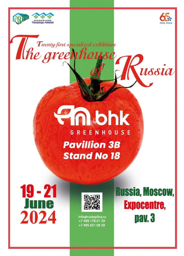 We would be happy to welcome you, our valued visitors, at 3B/Stand 18 at the 21st Private Russia Greenhouse Fair, which will be held at Moscow Expocenter, Russia, between 19-21 June 2024.