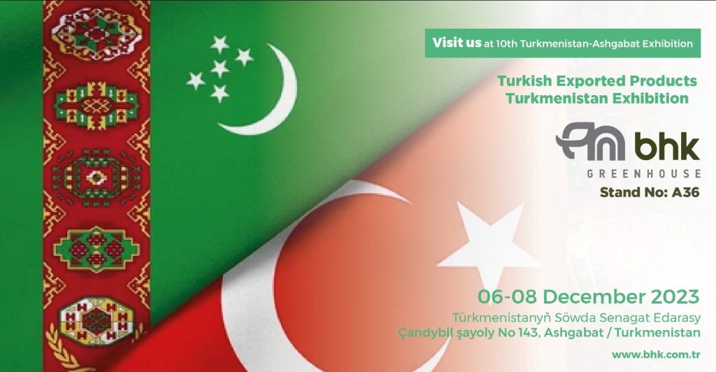 BHK Greenhouse is pleased to welcome you, our valued visitors, at Stand No. A36 at the fair to be held in Turkmenistan – Ashgabat. Our team is waiting for you at our stand between 06 – 08 December 2023 to provide information about greenhouse materials, agricultural technologies and advanced greenhouse applications.